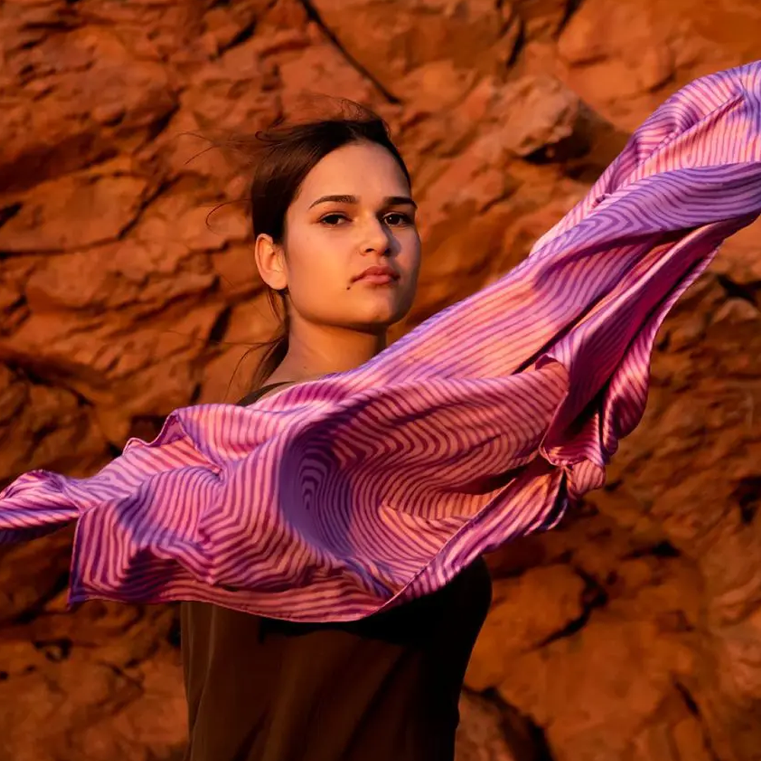 92cm x 108cm 16mm 100% silk satin with hand rolled edges and double sided printing.